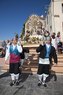 Hoy ha sido el dia grande de las fiestas de Villamayor, procesion con danceros, damas, representacion consistorial y el pueblo entero vestido de gala.